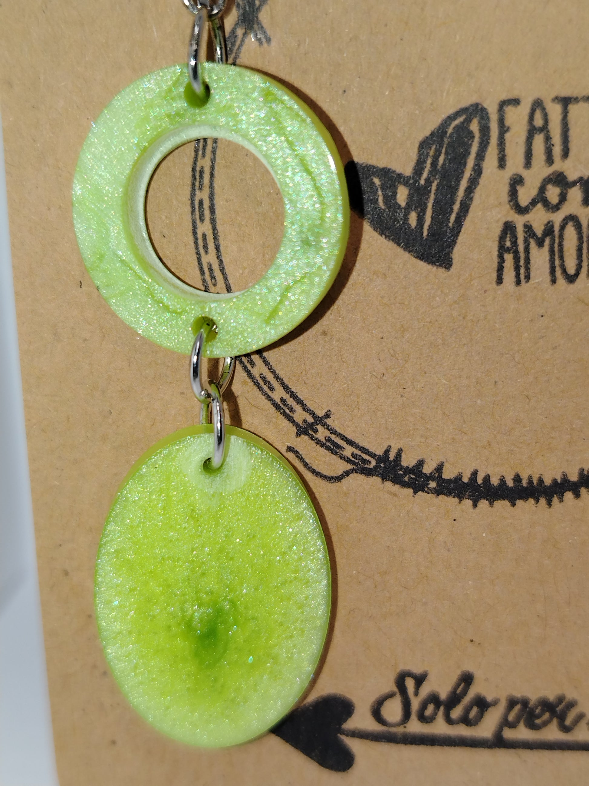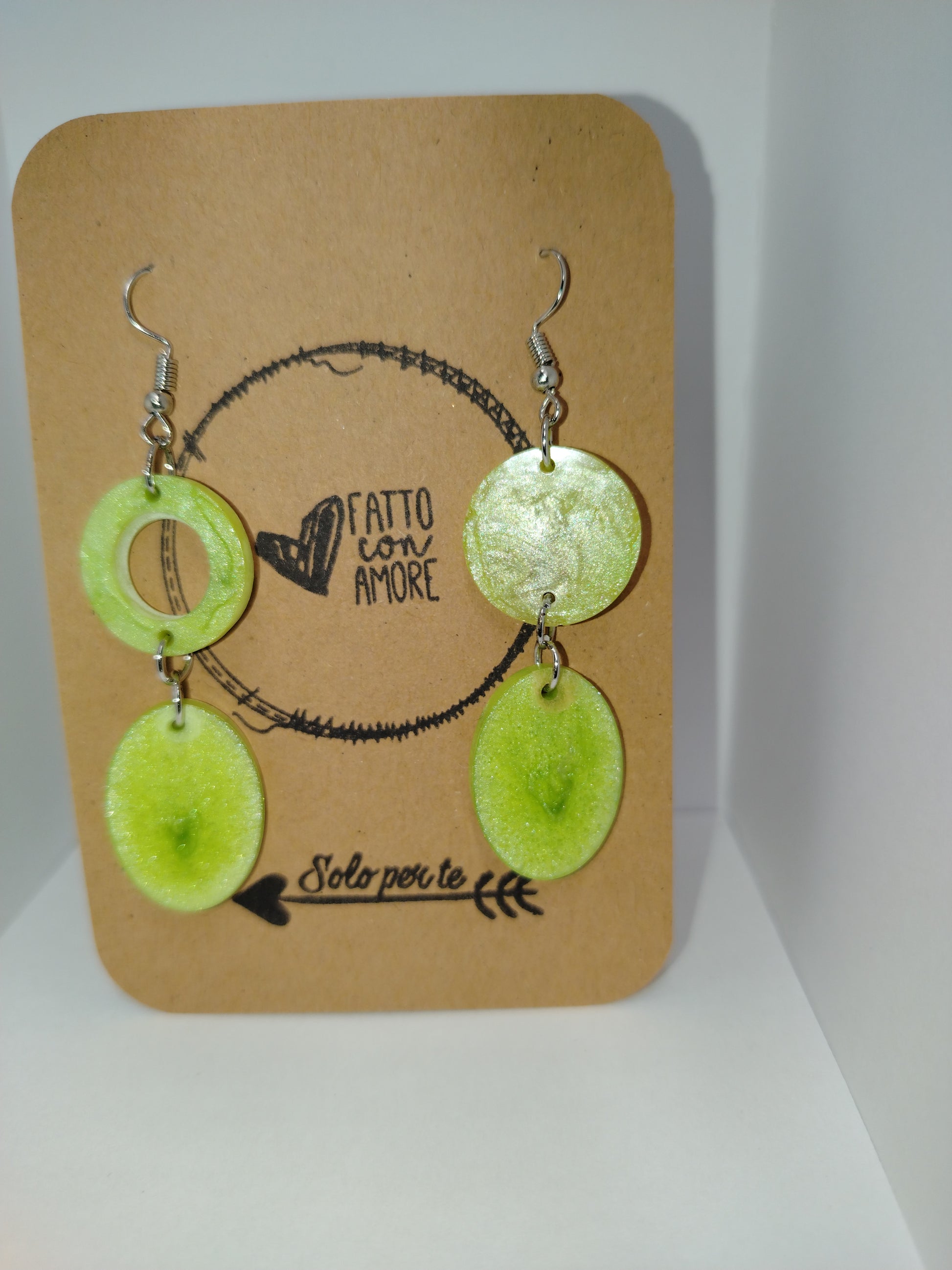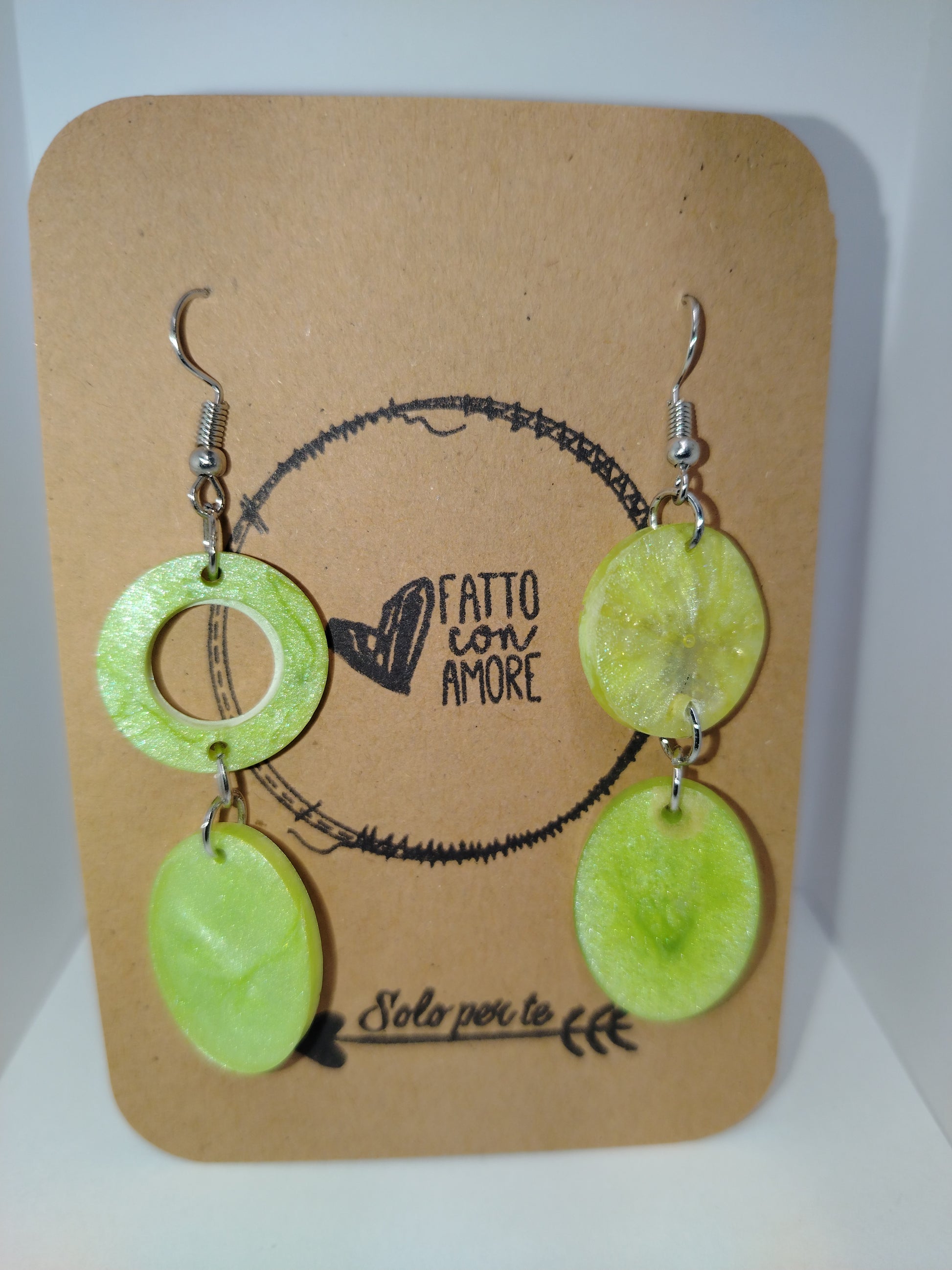 Orecchini per lescenti realizzati con pasta fimo pendente e lucidatura a Resina metalleria in acciaio