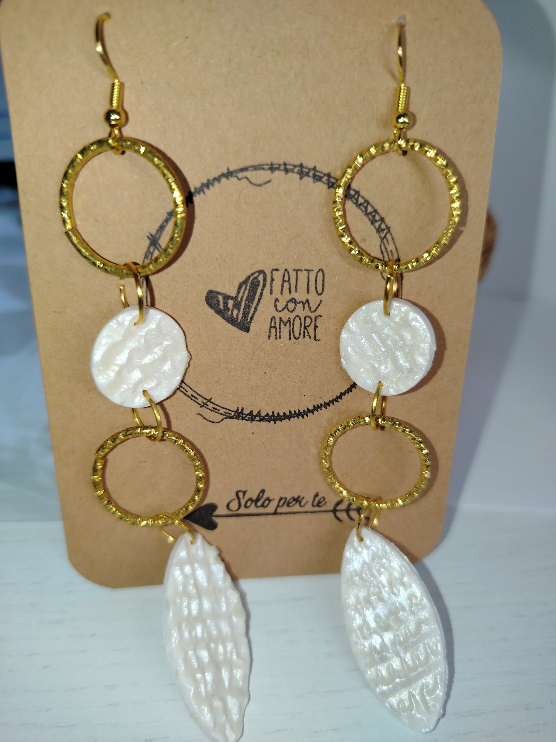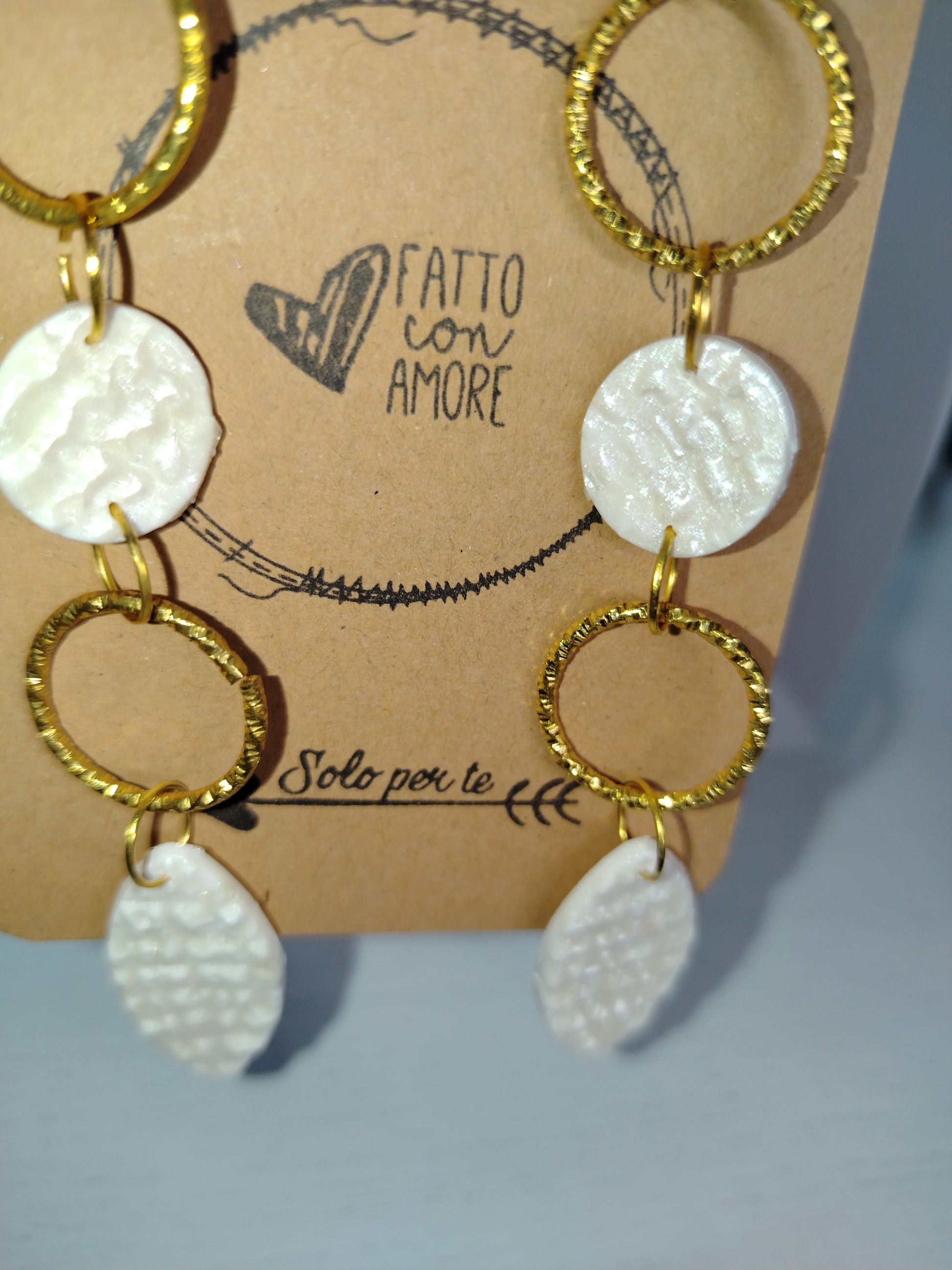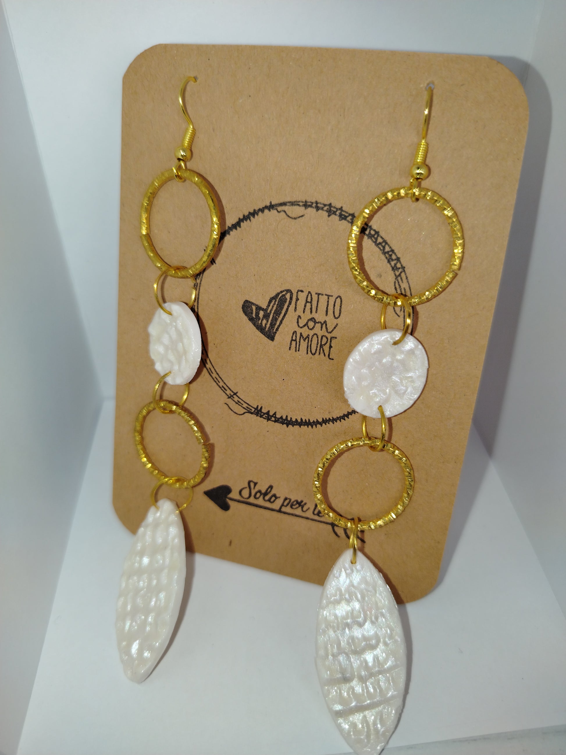Orecchini realizzati in pasta fimo per le scelte e texture coccodrillo con metàalleria durata a cerchio lunghezza totale 10 cm,5 cm
