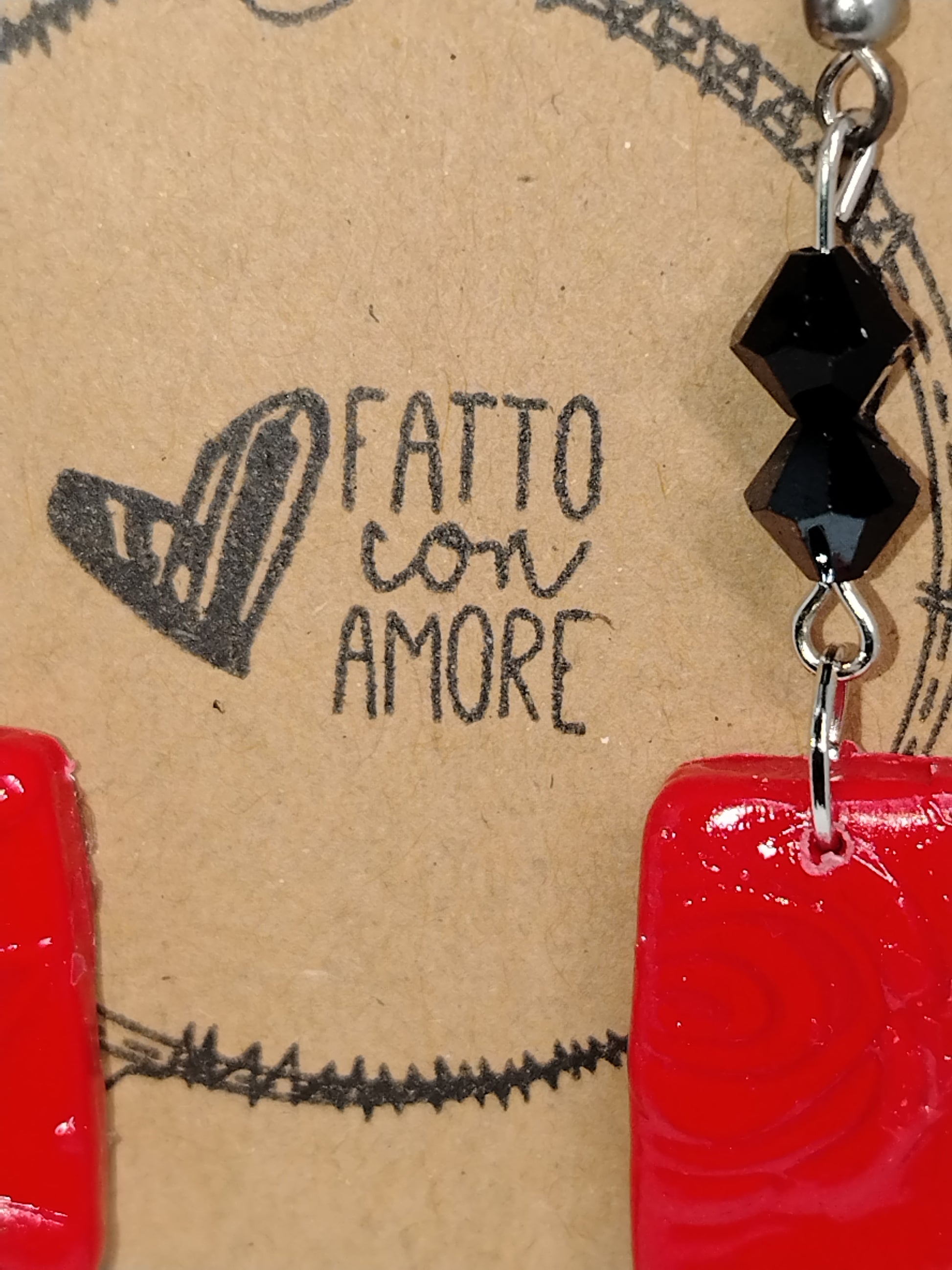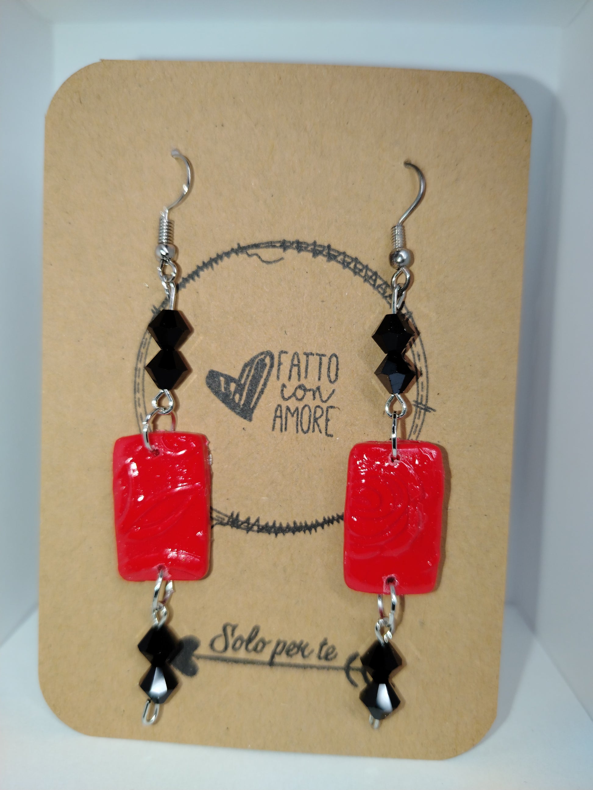 Orecchini realizzati con pasta fimo e Swarovski nero cristallo in acciaio lunghezza totale 7 cm