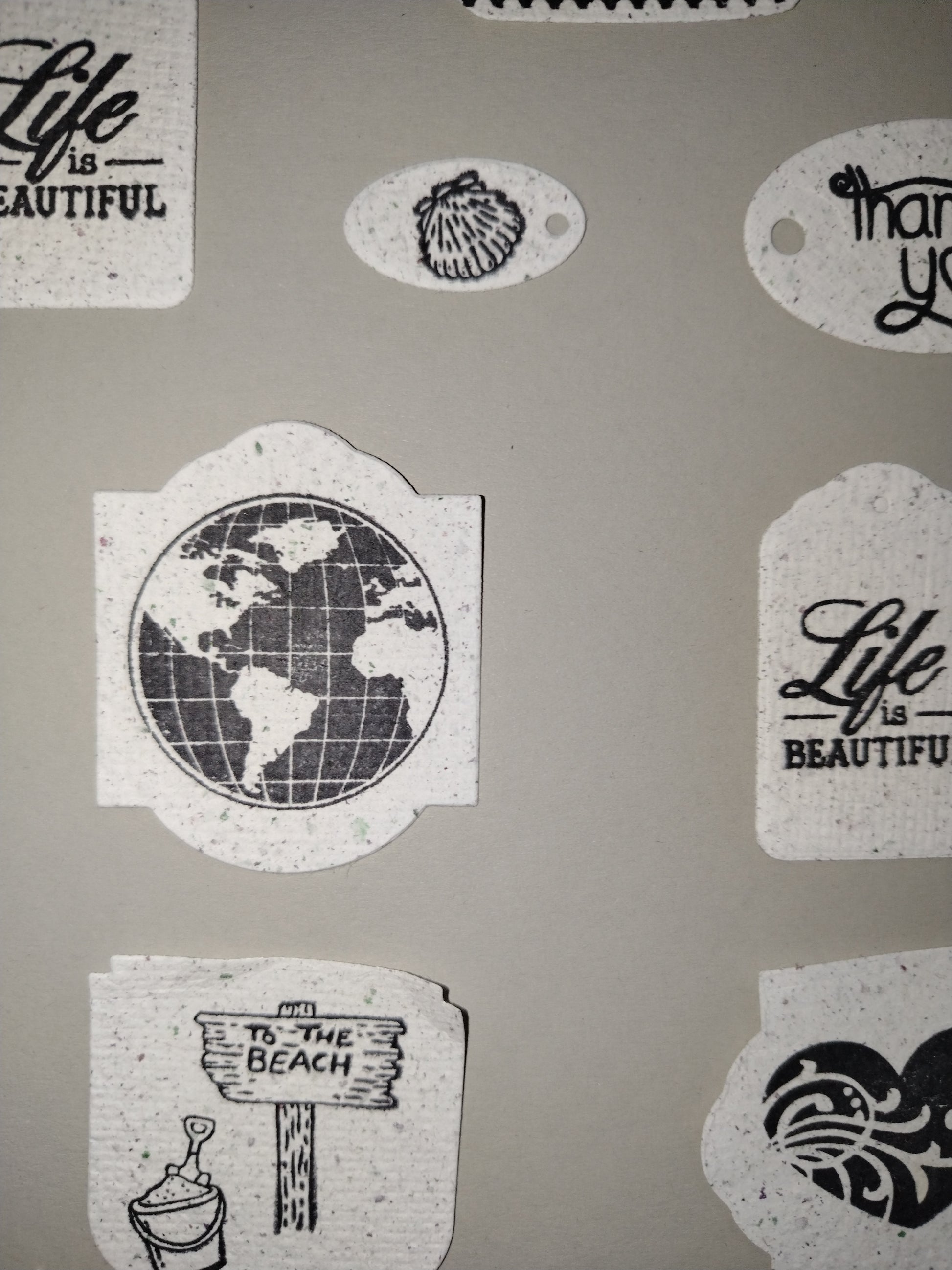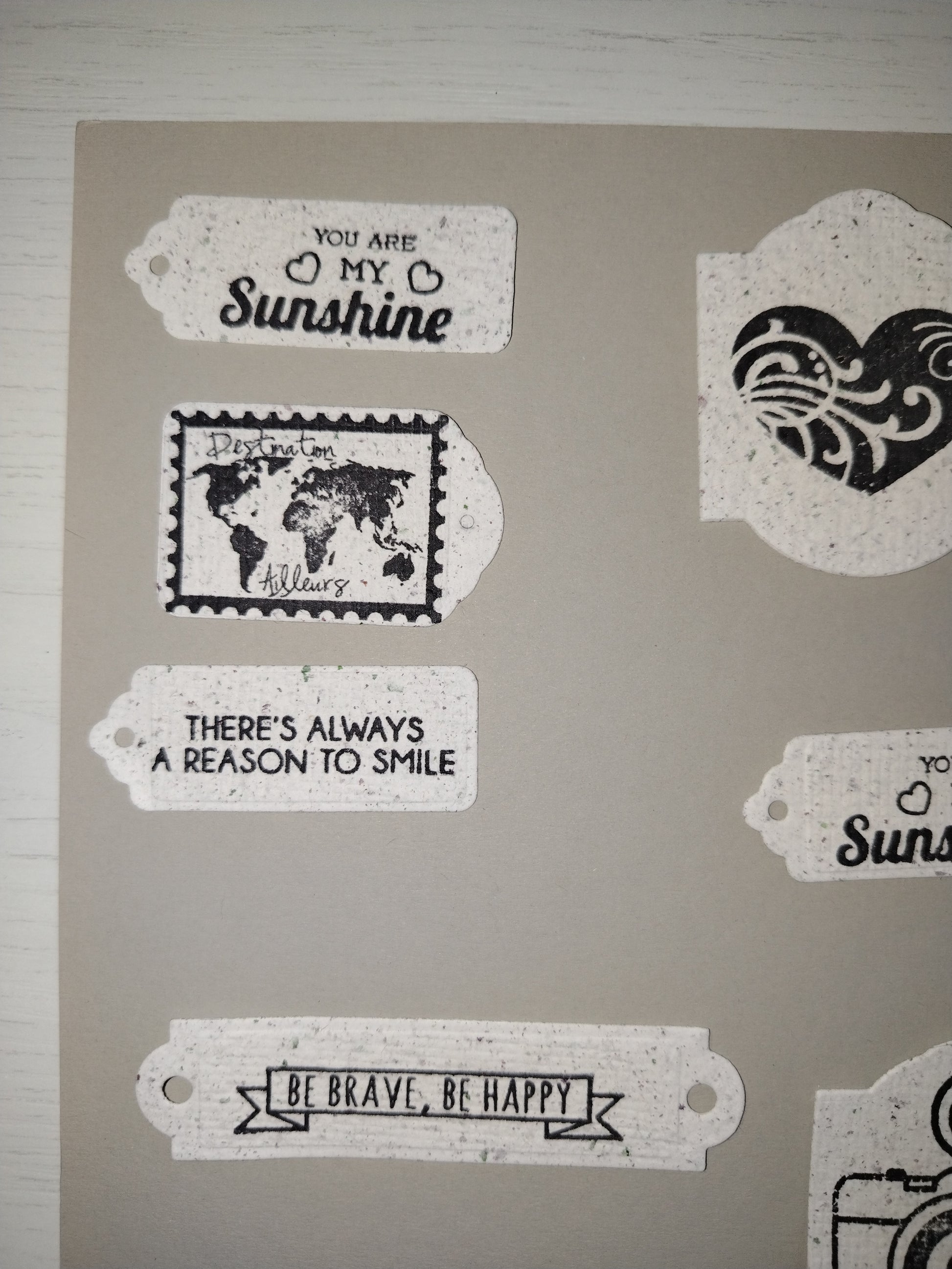 18 tag in carta artigianale con timbri diversi ideali per scrapbooking e piccoli regali personalizzati